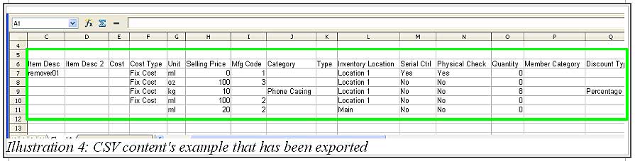 2. Click on Export item button as highlighted in the illustration below to export a list of items from your system.