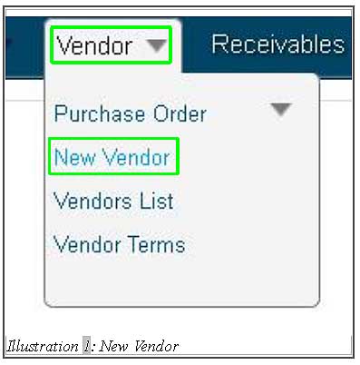 1. Go to Vendor > New Vendor to create a new vendor first.